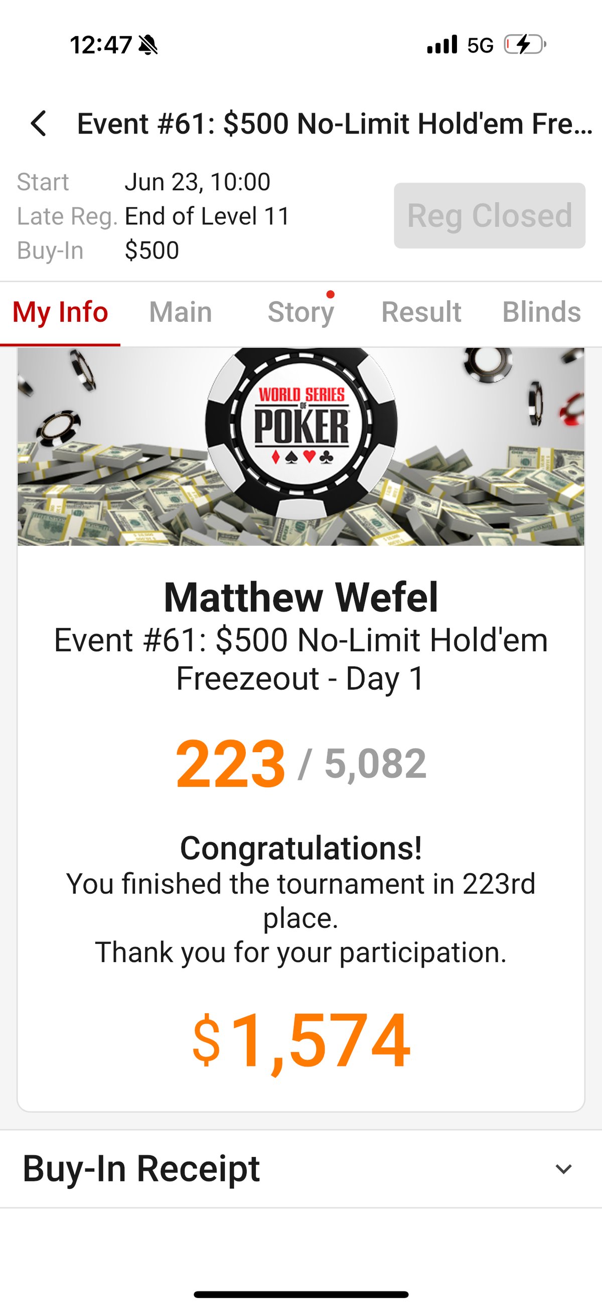 Event #61: $500 No-Limit Hold'em Freezeout